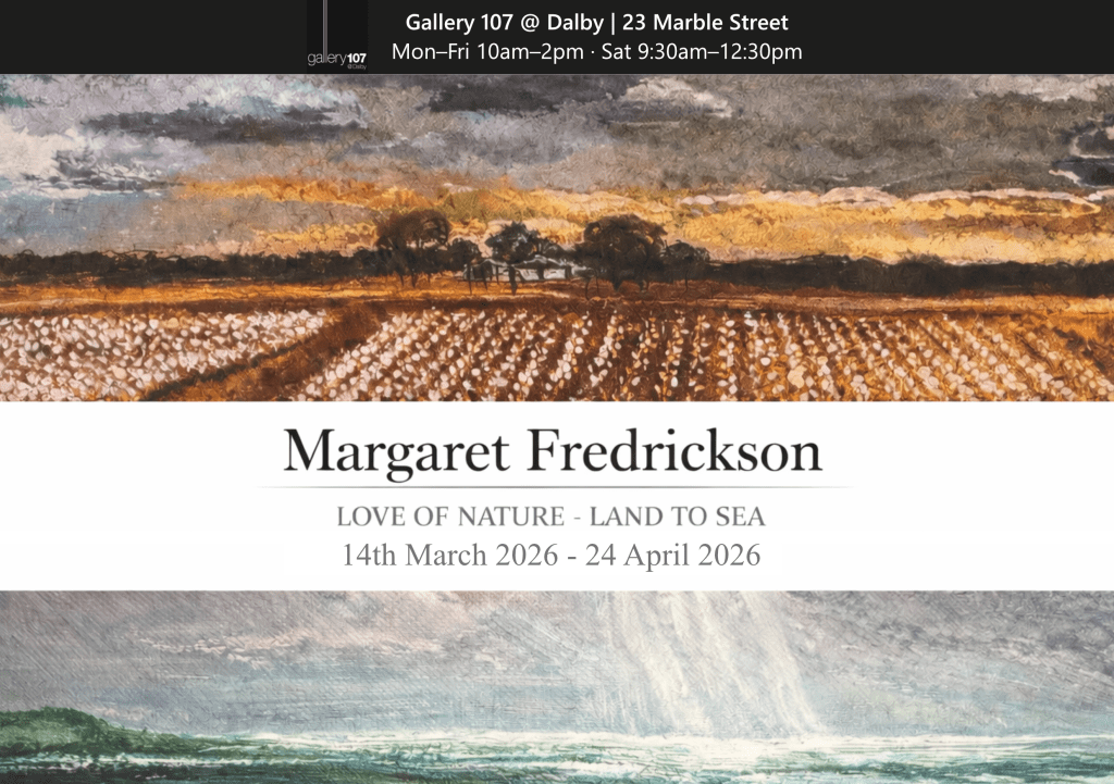 Gallery107@Dalby aims to offer a cultural experience equal to any that are found in established Art Galleries across the country. With a commitment to fostering artistic expression, Dalby’s Art Gallery continues to showcase, support, and nurture local creative talent across the Western Downs Region by offering the opportunity of local exhibitions, workshops of quality and variety, as well as the ongoing opportunity to be involved directly in the running of the programs and exhibitions.