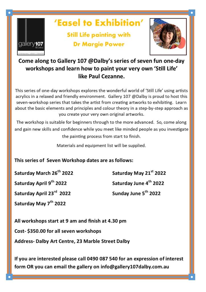 March 18, 2022 Gallery 107 Dalby Workshops starting 26 March Share this: Click to share on X (Opens in new window) X Click to share on Facebook (Opens in new window) Facebook Like Loading... Related